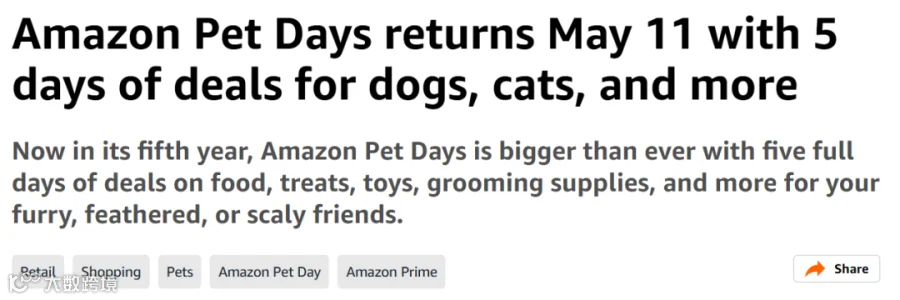亚马逊Pet Days的演变印证了宠物经济的增长轨迹。