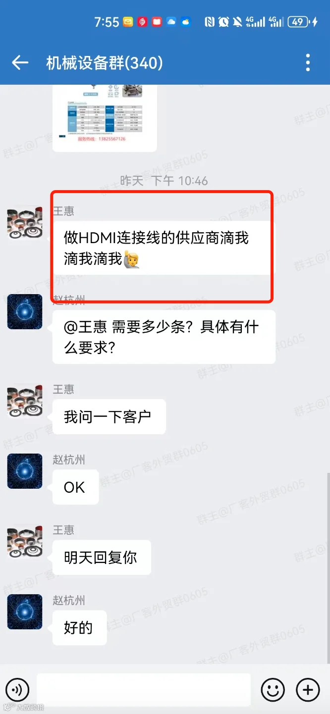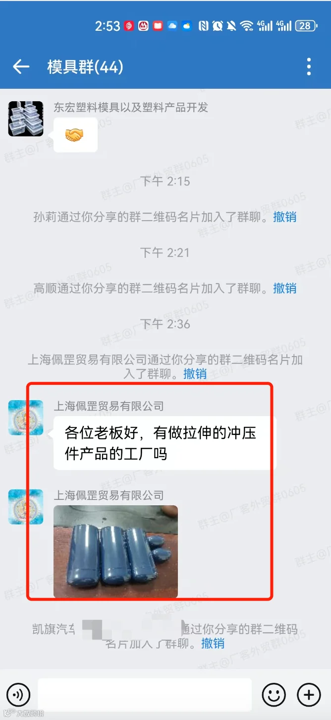机械设备交流群,一个现有340多人,另一个有210多人,有采销需要的外贸人可以加入!群里可以发布的信息:外贸采购信息、产品销售信息,文字、图片、视频都可以,控制广告频率,不能刷屏广告。