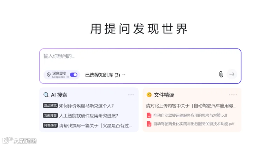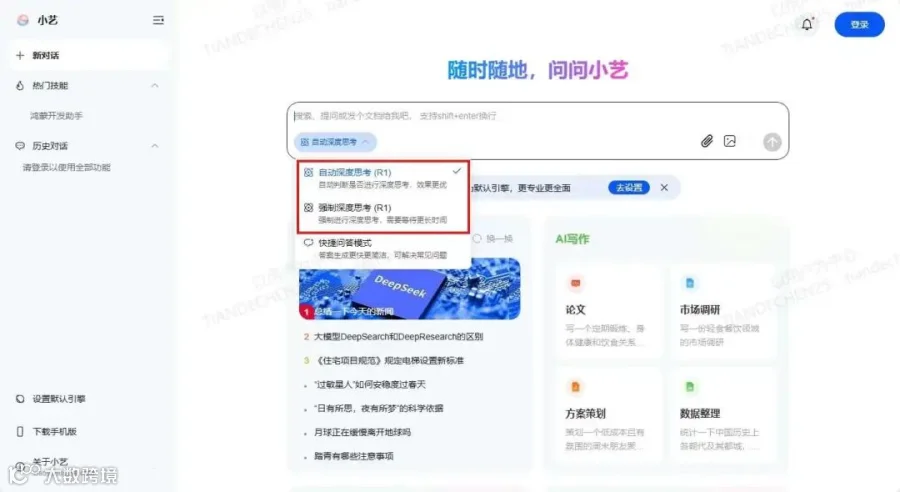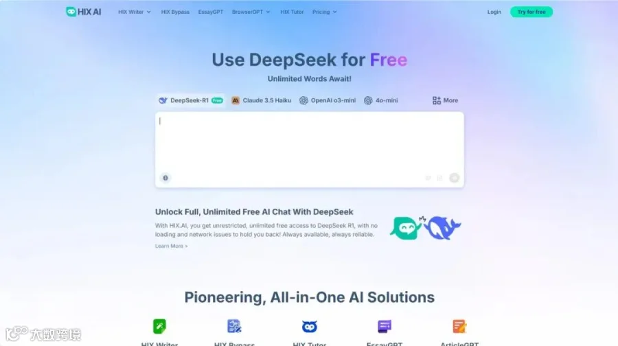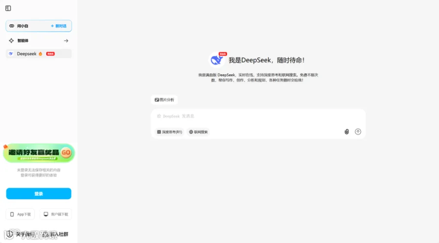全能AI助手,接入DeepSeek-R1 671b满血模型,提供免费无限制服务,支持多端使用。