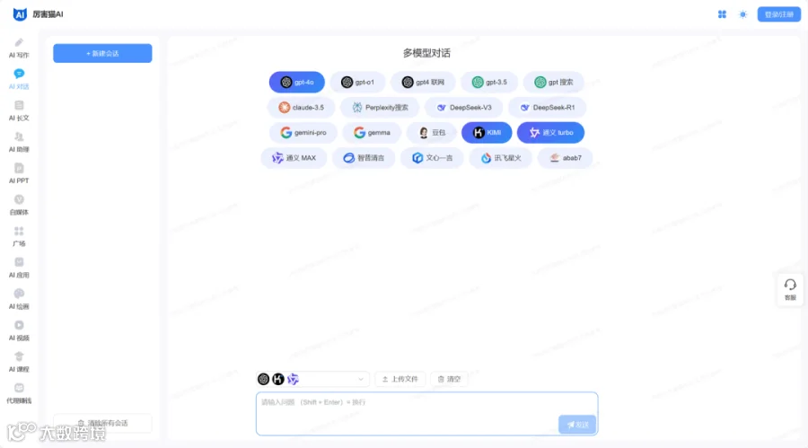 集成ChatGPT、Midjourney、Claude等全球10余款主流AI工具的综合平台,提供一站式AI服务体验。