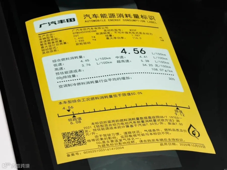 • Core Performance: Top speed of 180km/h, WLTC comprehensive fuel consumption of 4.56L/100km, fuel tank capacity of 36L, and curb weight of 1430kg.