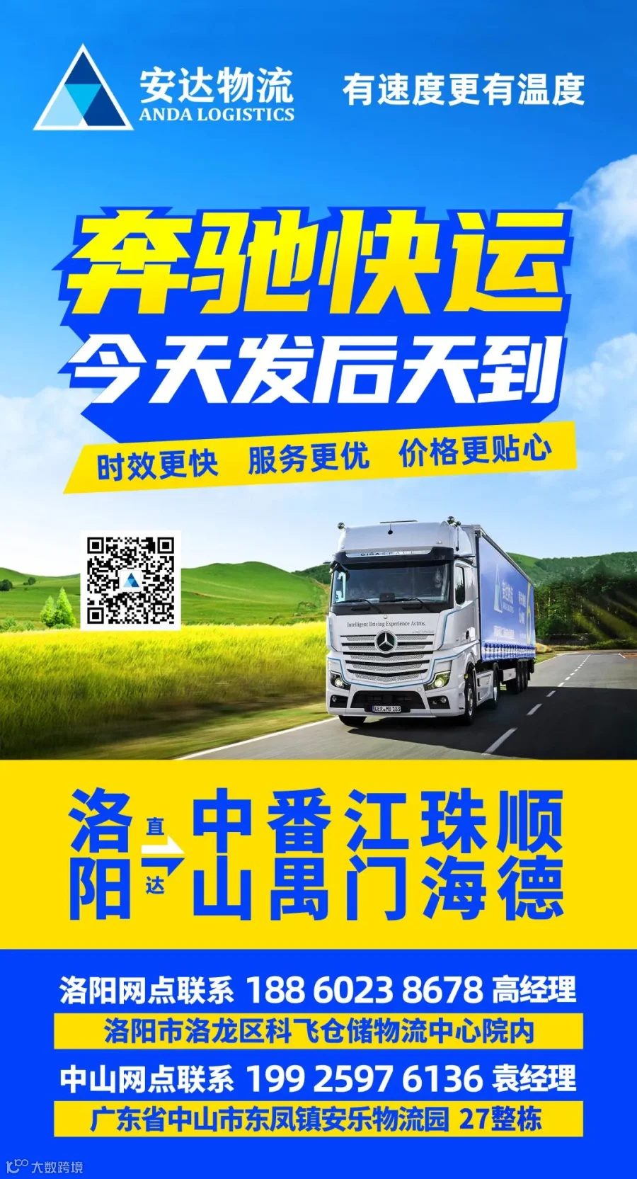 物流新动态丨洛阳直发广东,奔驰快运今天发后天达