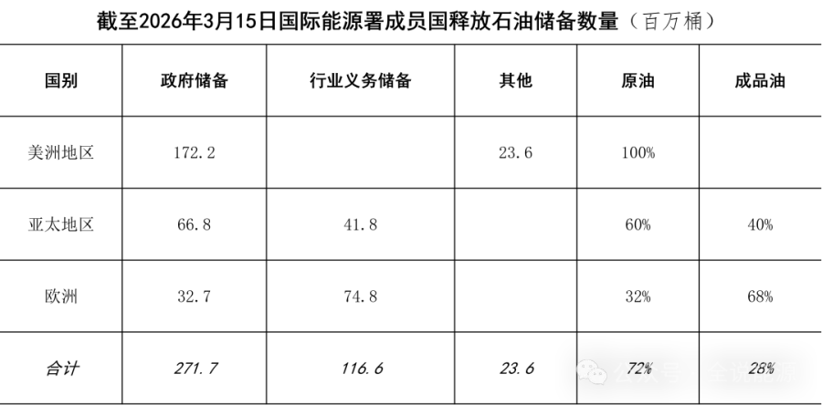 面对供应危机,国际能源署(IEA)32个成员国协调释放4亿桶战略石油储备,为史上最大规模操作。但该储备总量仅能覆盖全球约50天需求,且释放周期长达120天,日均投放约330万桶,远低于波斯湾地区800万桶/日的供应损失,难以从根本上扭转供需失衡。