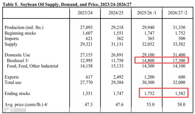 同时生柴政策端进一步加码需求。美国环保署预计3月底敲定2026年生物燃料强制掺混配额,目标量较2025年猛增67%至56亿加仑,直接拉动豆油生物燃料消费增长17%;印尼虽暂缓B50全国推广,但能源部明确年中或恢复B50 强制掺混政策,高油价环境下,印尼生物柴油原料需求将进一步扩张,油脂工业需求成为价格上涨的核心抓手。