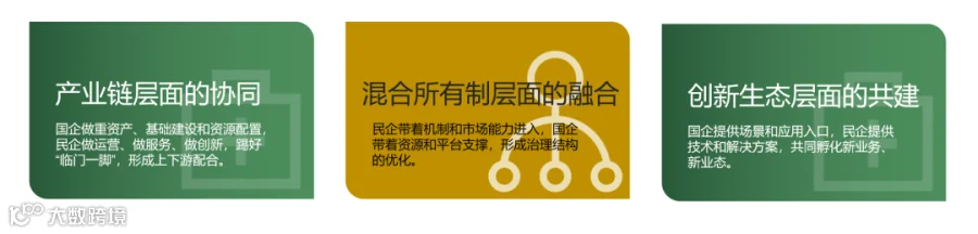 国企发挥资源禀赋与政策通道优势,民企贡献机制灵活与创新动能:产业链层面实现“国企做重资产、民企做临门一脚”;混合所有制优化治理结构;创新生态中共同孵化新业态。