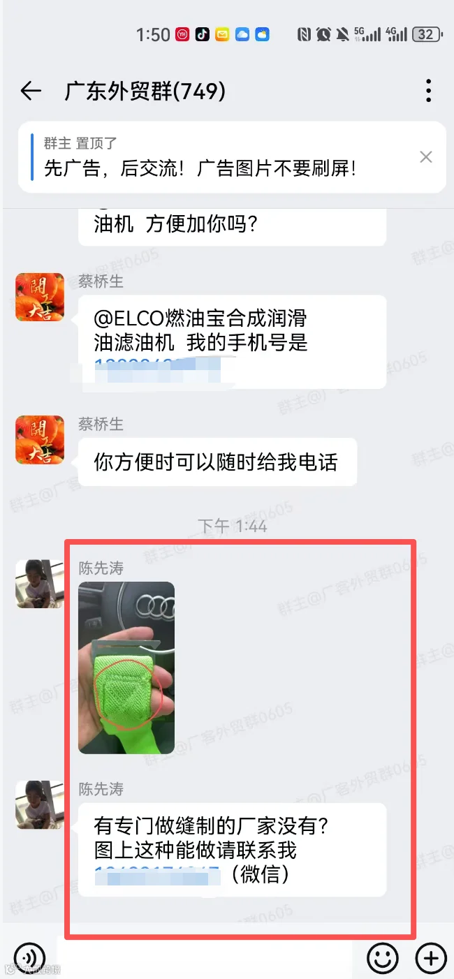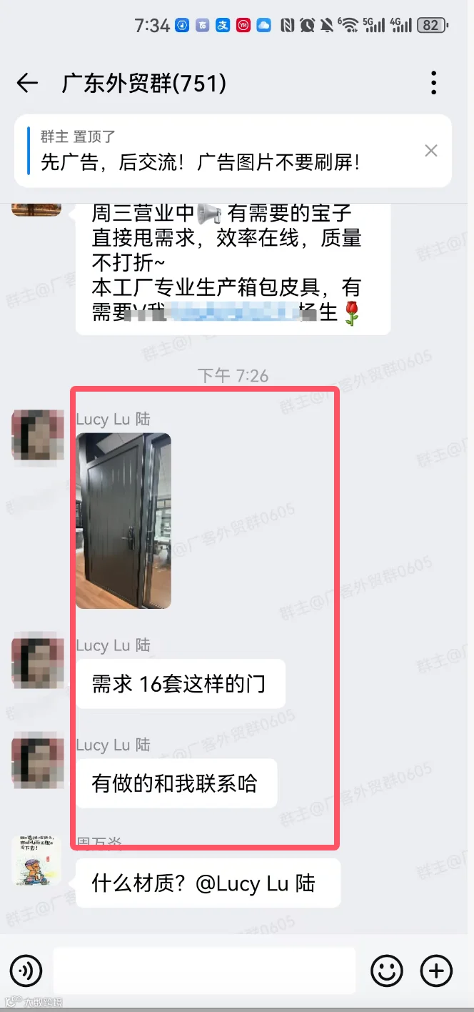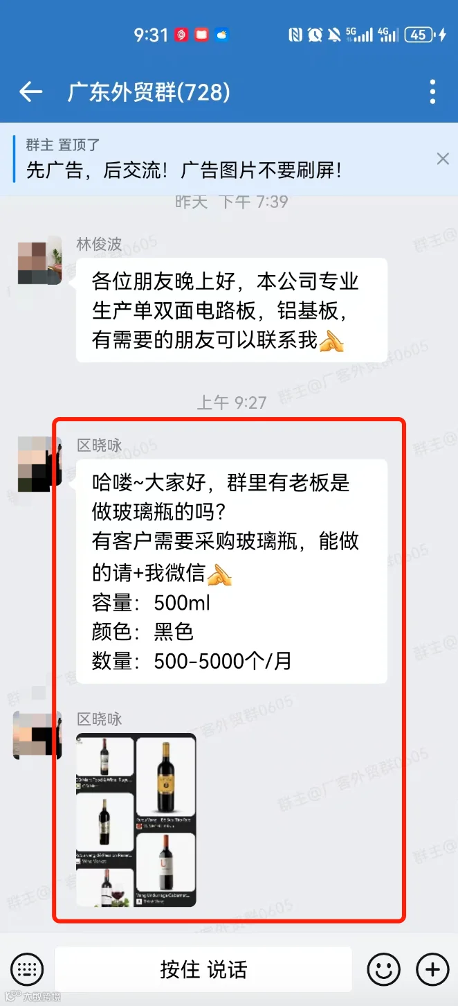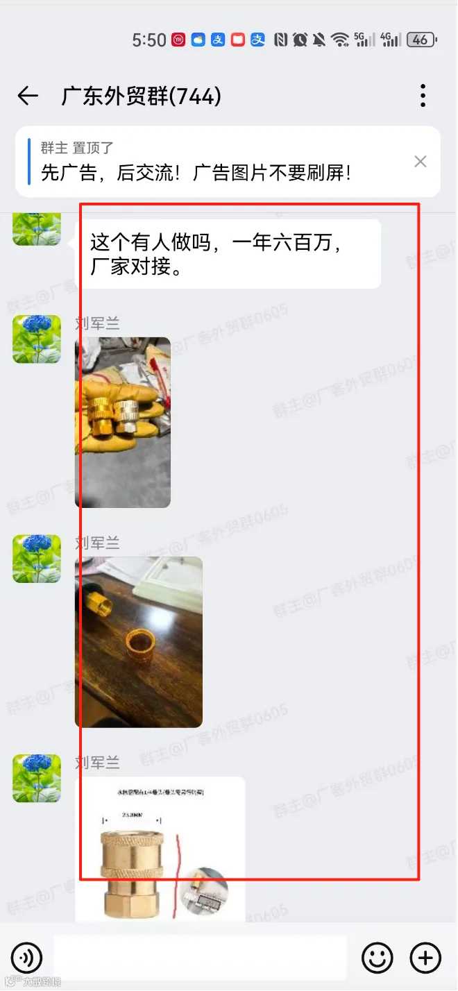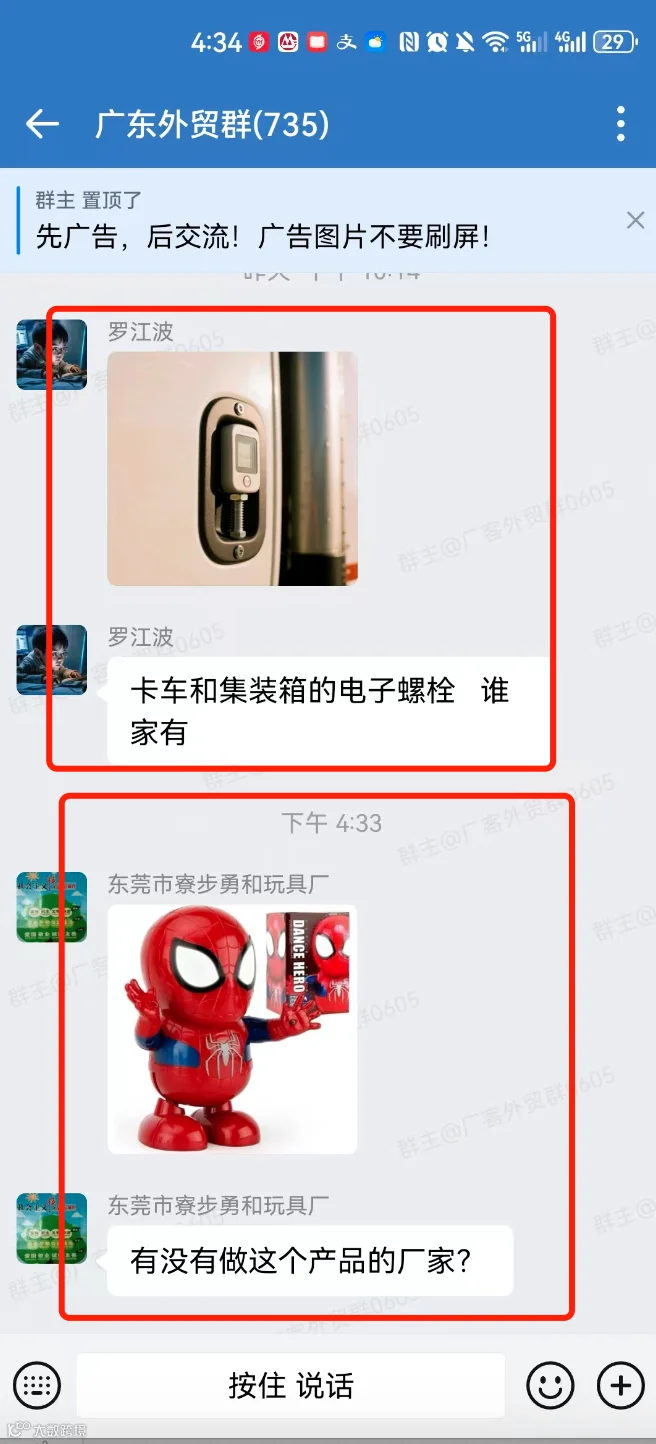 群里可以发布的信息:外贸采购信息、产品销售信息,文字、图片、视频都可以,控制广告频率,不能刷屏广告。