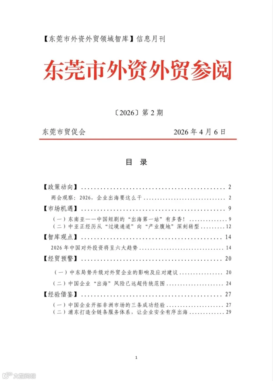 导读:2026年第2期东莞市外资外贸参阅