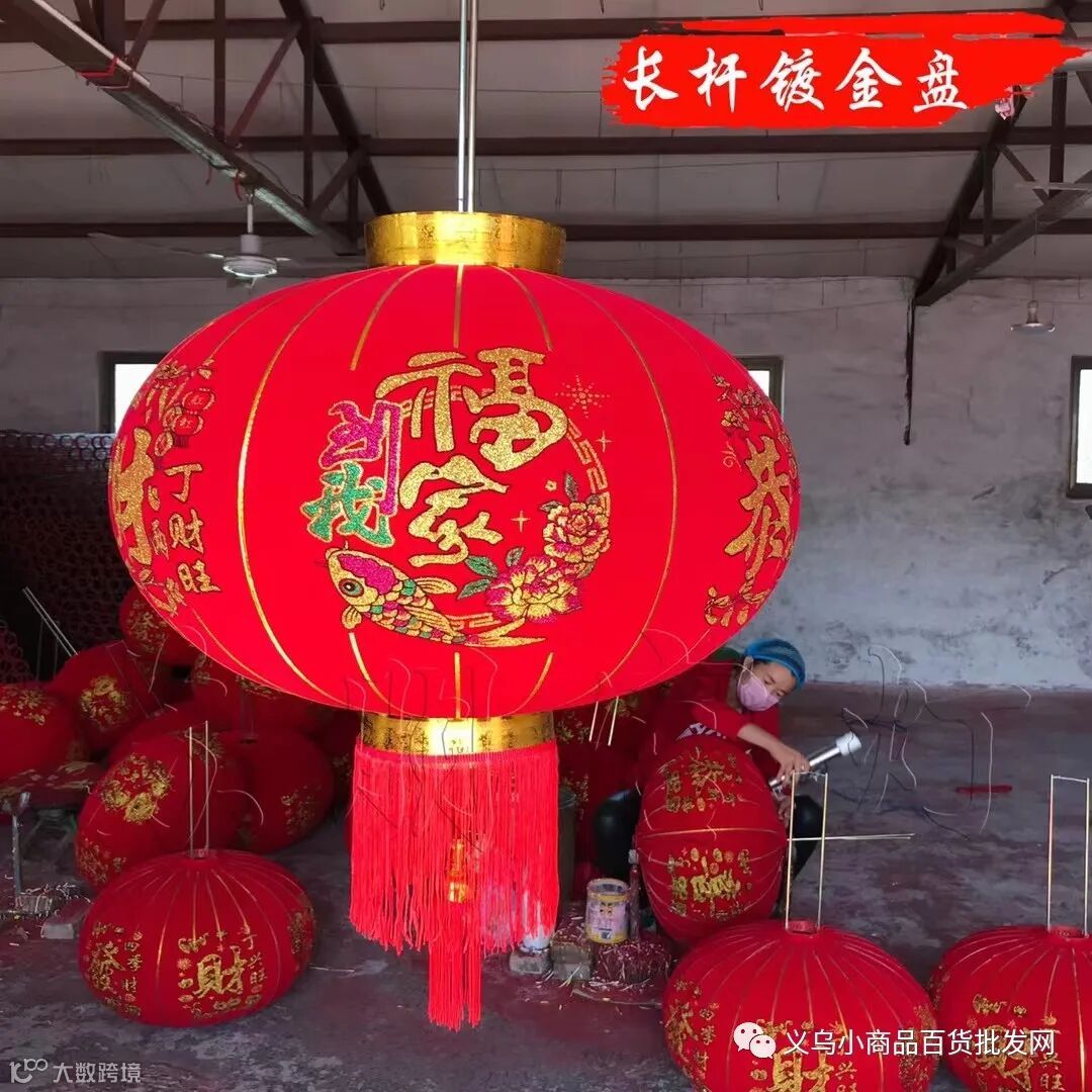长杆镀金盘植绒灯笼