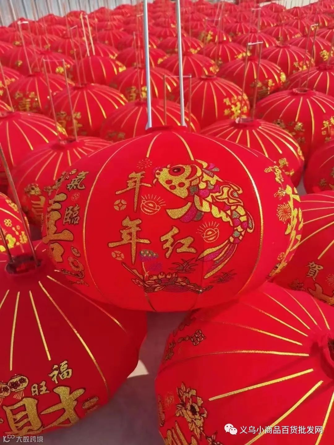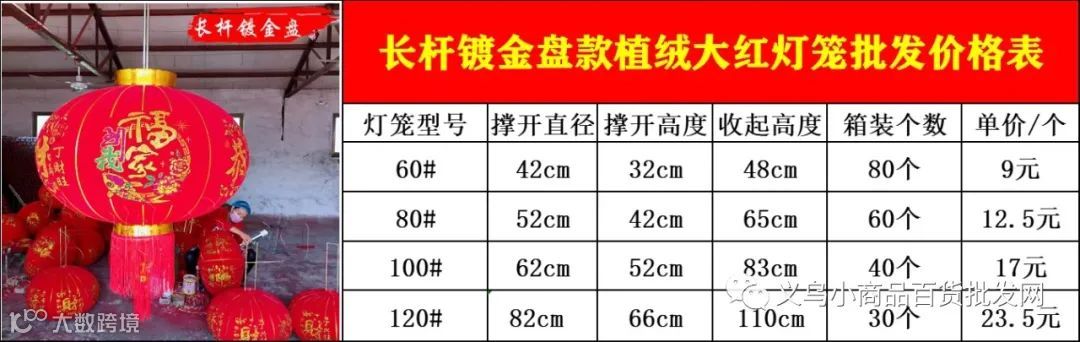 经典大红灯笼款式,提供60#、80#、100#、120#、150#五种尺寸,花型随机,整箱发货,适合节日批量布置、电商分销。