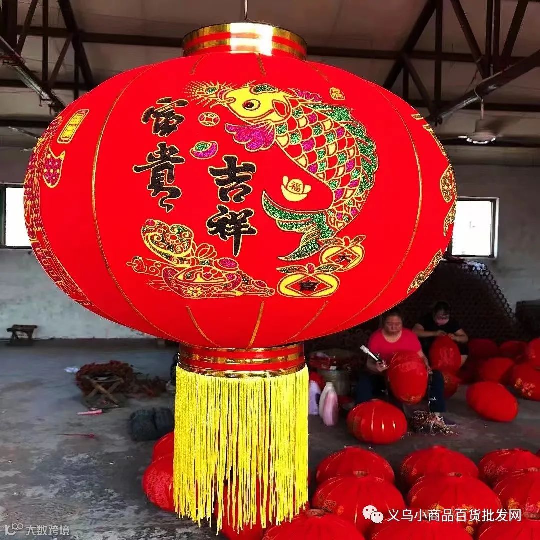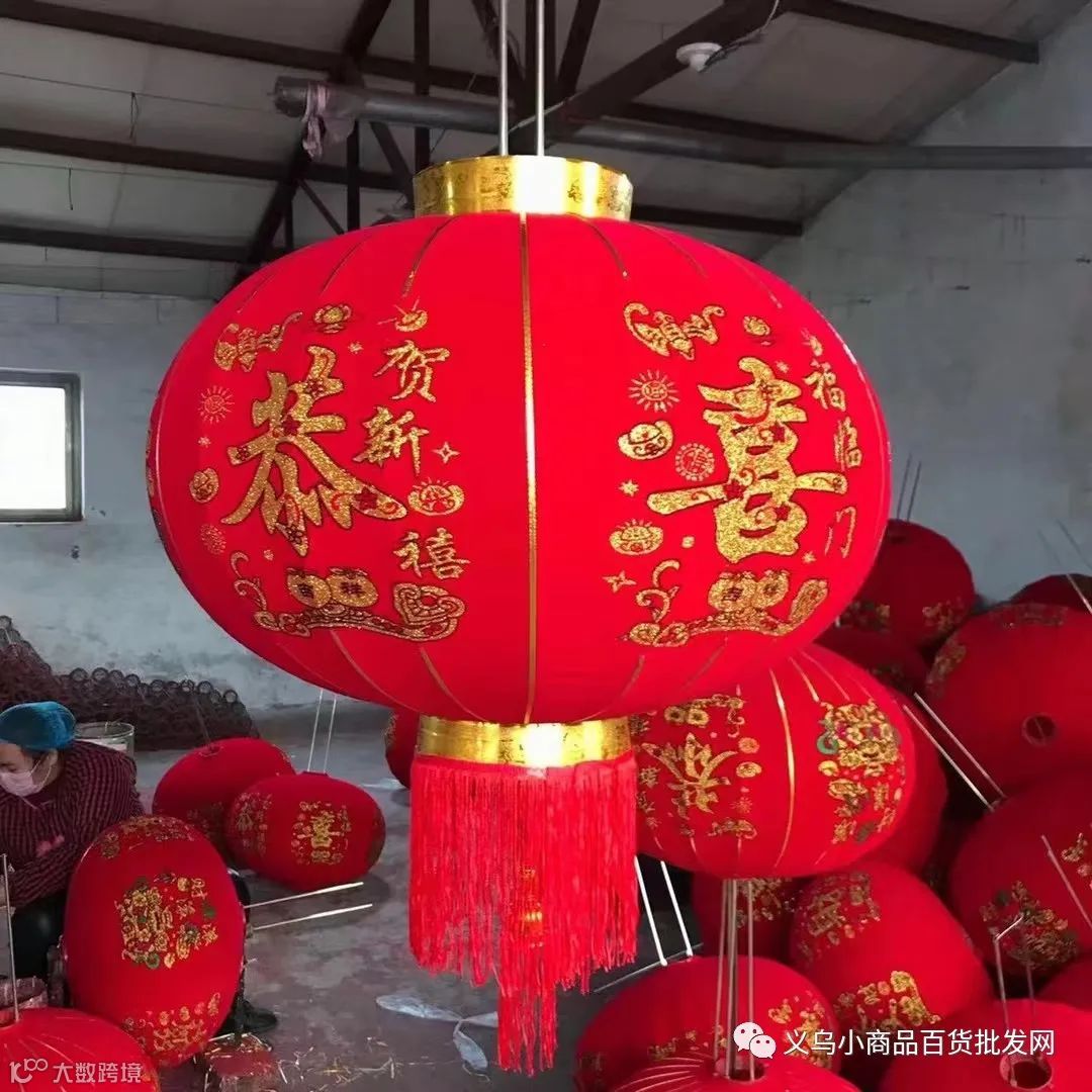铁钩高档植绒大红灯笼