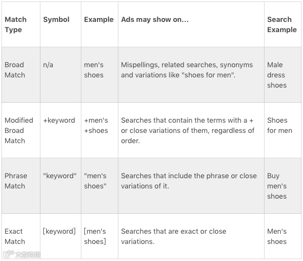 使用关键词匹配模式的方法有好几种。虽然关键词匹配模式是你管理不同搜索词的基本途径,但你的最终出价对象还是搜索词(search terms)。