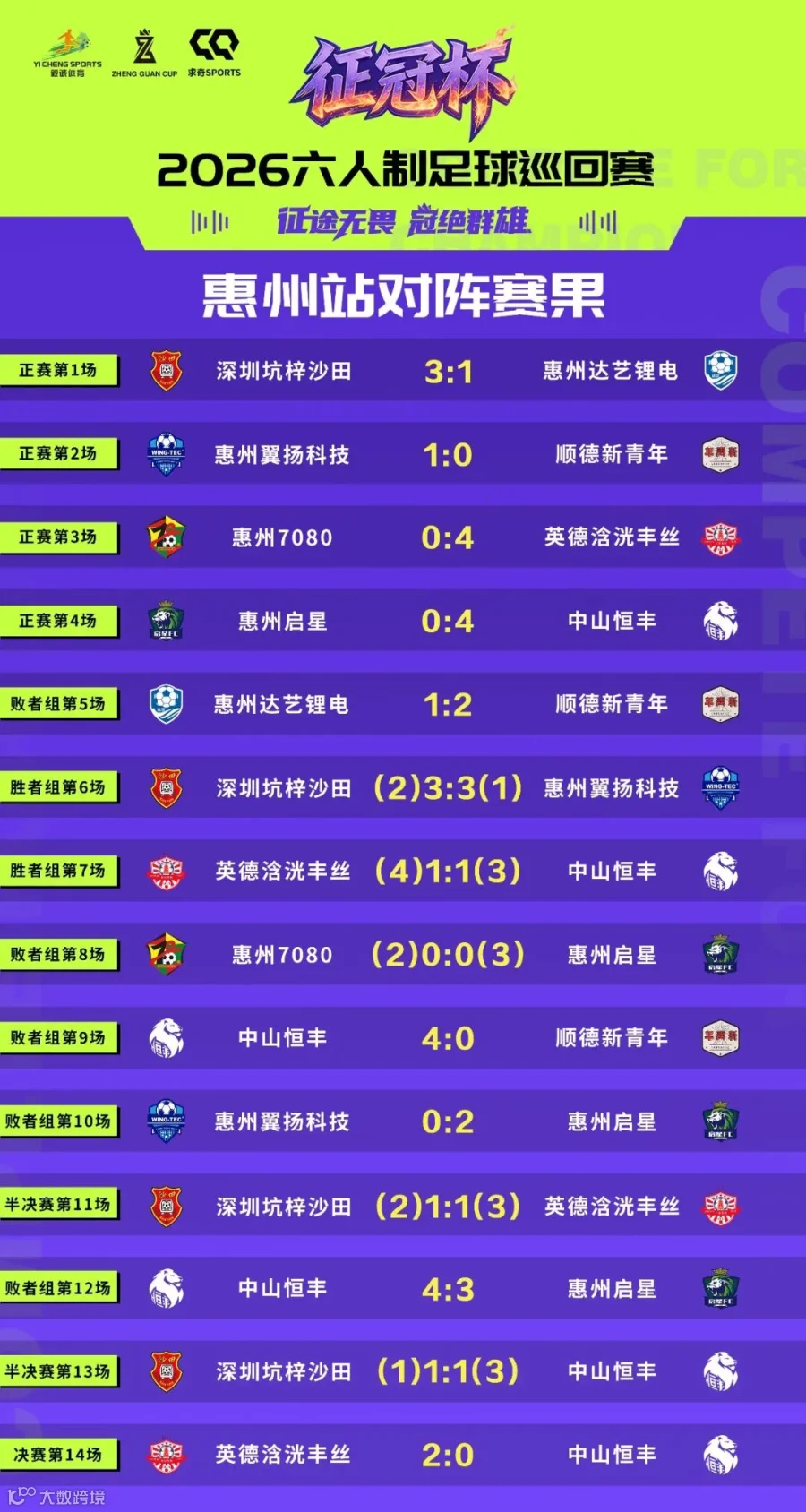 惠州站对阵赛果
