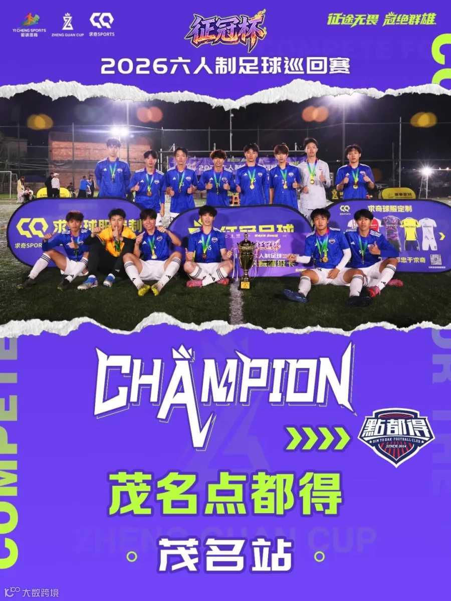 3月10日,2026年广东省征冠足球巡回赛茂名站在化州7号足球公园展开角逐。茂名点都得上演了一场热血沸腾的逆袭夺冠大戏!正赛第7场,茂名点都得0:1飞马劲抽FC,遗憾输掉比赛,掉入败者组。此后的每一场比赛都很关键,茂名点都得丝毫不敢懈怠,第11场与飞马劲抽FC再度狭路相逢,最终以4:0复仇成功,一路勇闯入决赛。在决赛中最终他们凭借顽强的大心脏以一球小胜一直处在胜者组的纯料铁军,勇夺茂名站冠军。恭喜茂名点都得获得2026征冠总决赛资格。