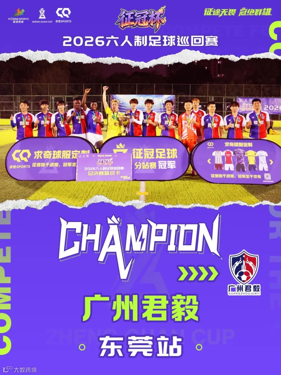3月31日,2026征冠足球巡回赛广东东莞站在东莞厚街体育公园展开角逐。广州君毅从小组赛开始,便展现出了非凡的实力与斗志。他们凭借着熟练的配合和双外援的精彩表现,一路过关斩将,最终以四战全胜的骄人战绩力压群雄,成功捧起冠军奖杯。恭喜广州君毅获得2026征冠总决赛资格。
