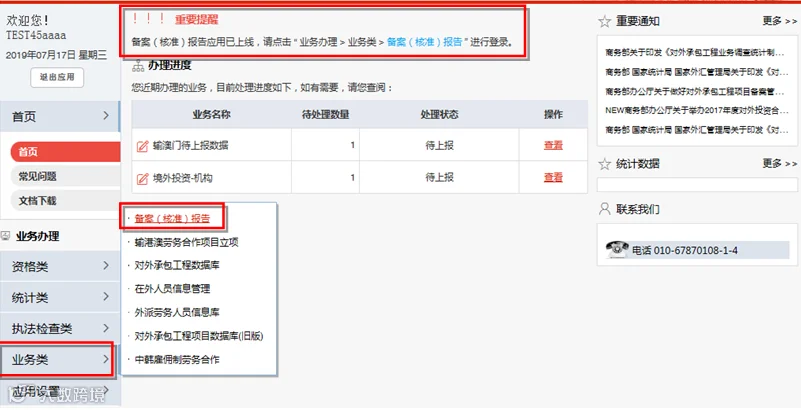 点击“业务类>备案(核准)报告”进入子应用