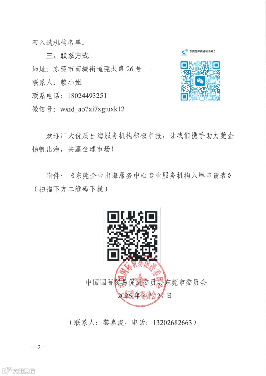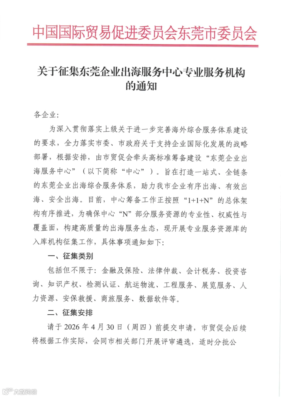 导读:关于征集东莞企业出海服务中心专业服务机构的通知