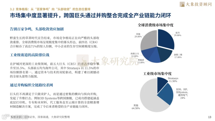 全球制造业加速向高端化、绿色化、数字化转型,3D打印产业完成从“辅助制程”到“核心生产力”的历史性跨越。技术工艺突破、材料体系完善与垂直场景规模化落地,推动其在航空航天、医疗齿科、汽车工业及3C电子等领域实现商业化应用,成为大国制造竞争的战略支点。依托高端制造领域研究积淀,本报告解析2026年3D打印行业技术演进、市场格局与价值重构,聚焦金属打印、多材料复合打印等核心技术,拆解铂力特、华曙高科、Stratasys、EOS等标杆企业战略路径,厘清产业链利润分配逻辑,为企业及投资机构提供决策参考。
