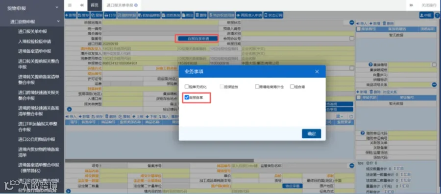 - 在进口报关单申报模块勾选"自报自享",仅支持无纸化申报