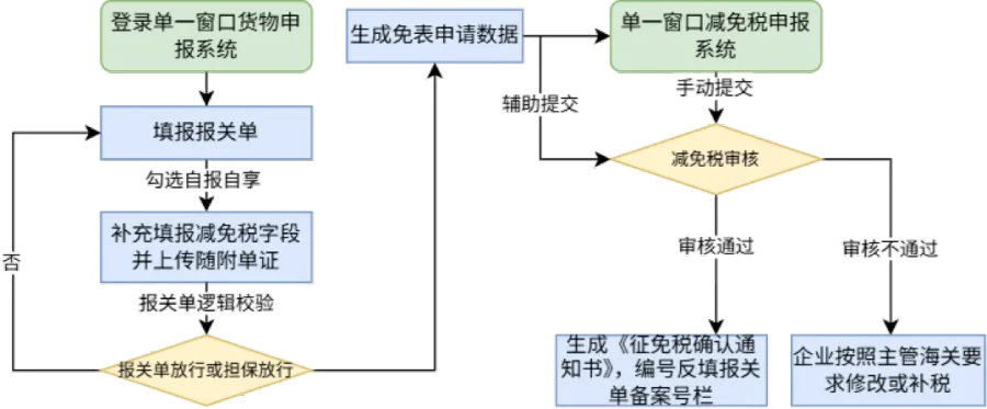 享惠主体名单内企业可自愿向主管海关申请适用,承诺对申报行为负责并接受海关培训辅导。获得资质后,企业可在各关区申报,减免税数据将自动流转至主管海关审核。