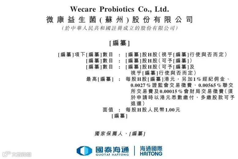 港交所4月29日披露,微康益生菌(苏州)股份有限公司正式向港交所主板递交上市申请书,国泰海通担任独家保荐人。招股书显示,该公司为全球领先生物制造企业,专注于益生菌菌种的研发、生产与销售。