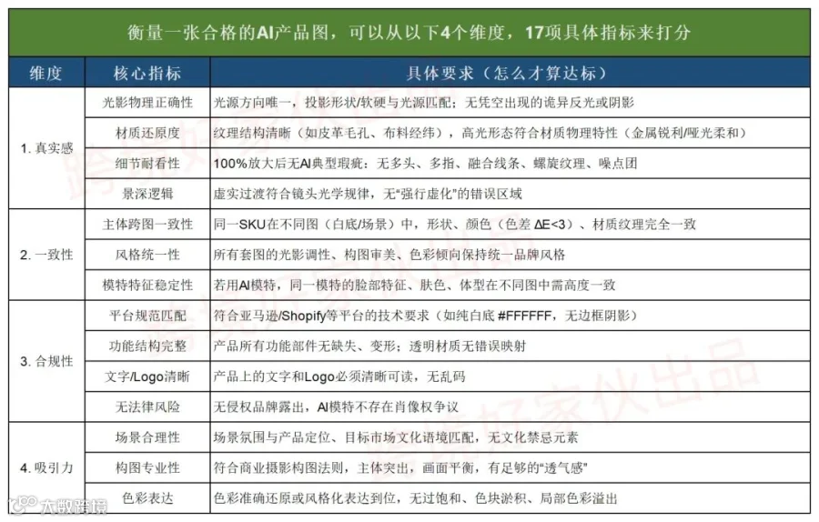 跨境电商行业对AI生成图片的"标准答案"要求聚焦于高质量、高一致性,同时消除AI感与廉价感。