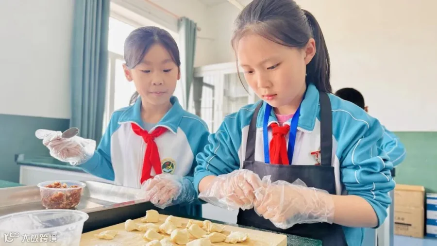 三至六年级的同学进行了“包饺子”劳动技能大赛。两名选手合作,共同完成制作剂子、擀面皮、装饺馅、包捏饺子、整理台面的全部工序。经过小组二人的默契配合,同学们终于在一片笑声中愉快地完成了。
