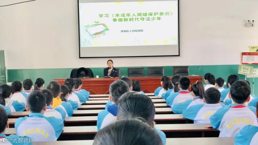 我校邀请津南区人民检察院检察官赵阳为我校学生进行《未成年人网络保护条例》普法宣讲。赵检察官针对学生年龄特点和心理特征,选取了典型案例,向学生们展示了各种网络风险可能造成的不良后果,并对促进未成年人网络素养、加强网络信息内容建设、保护未成年人个人信息、防治未成年人沉迷网络四方面作了深入讲解,引导学生树立正确的网络安全防范意识,提高网络安全警惕性,倡导同学们要学法、懂法、守法,树立正确用网观念,筑牢自我保护防线。