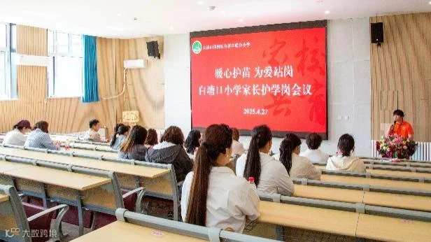 在充满希望与活力的四月,为进一步加强家校合作,保障学生安全,展示校园活力,4月27日,白塘口联合小学成功召开家长护学岗会议,并邀请参观学校大课间活动。此次活动不仅凝聚了家校力量,更让家长深度参与到学校教育管理中,意义非凡。