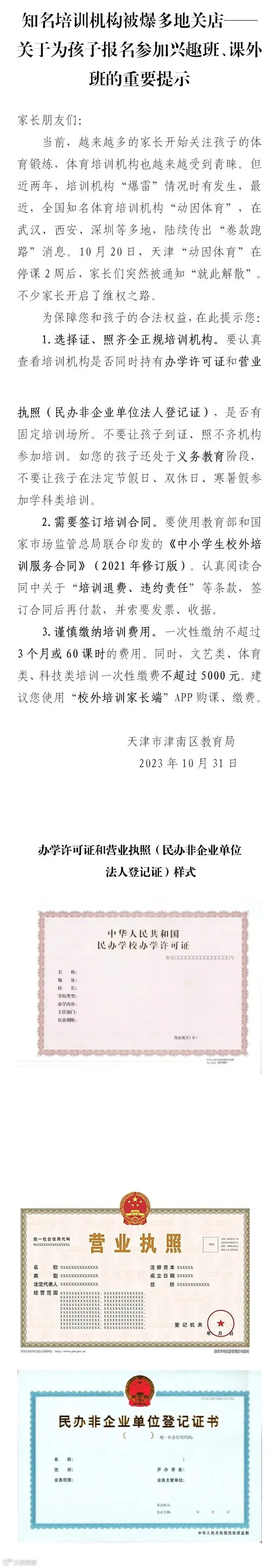 知名培训机构被爆多地关店——关于为孩子报名参加兴趣班、课外班的重要提示