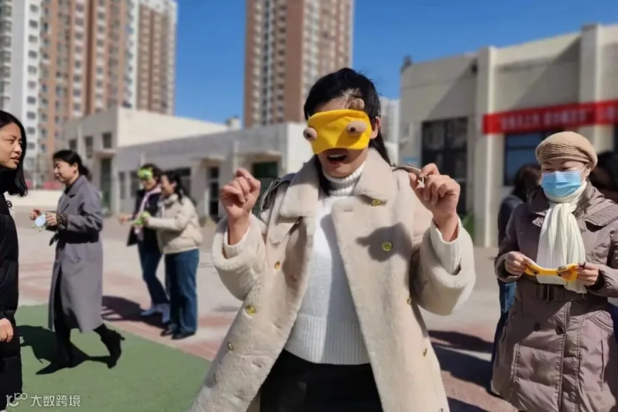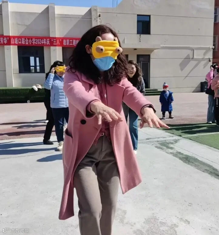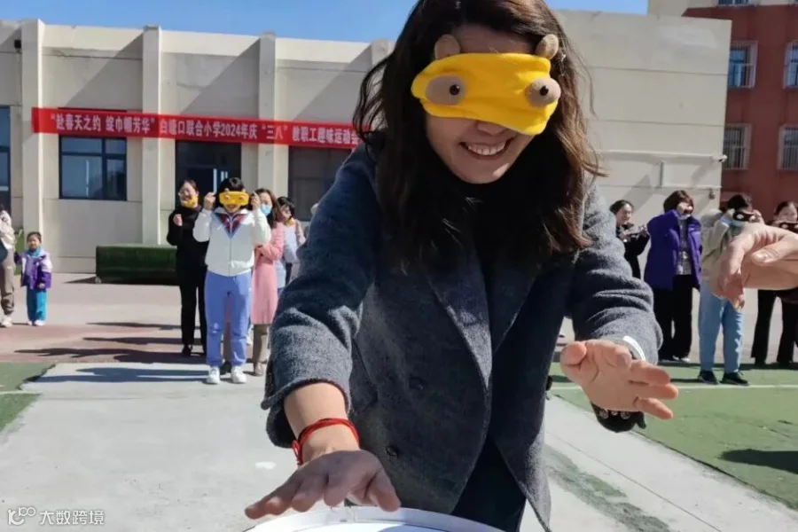 蒙眼击鼓游戏中,队员们将眼睛蒙住,原地转圈,在队友的提示下找到鼓并用手敲响,女教师们在运动场上亦疯狂奔跑亦开怀大笑,阵阵加油呐喊声不时响起,在享受专属节日快乐的同时,也感受相互鼓励、相互配合的同伴温暖,每个老师脸上都写满了喜悦与幸福!