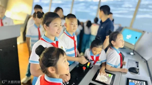 在海运职业学院专业教师的指导下,“知行少年”们迫不及待地登上了航海模拟器,开启了一场虚拟的海上之旅。他们亲手操纵着轮船的方向盘,感受着在波涛汹涌的大海中航行的刺激与挑战。通过模拟不同的海况和天气条件,学生们不仅学到了航海的基本技能,更深刻体会到了航海人的勇敢与坚韧。在模拟航行过程中,张老师耐心地为学生们讲解航海仪器的使用方法,以及航海中应对突发情况的技巧,让学生们仿佛置身于真实的航海情境中。