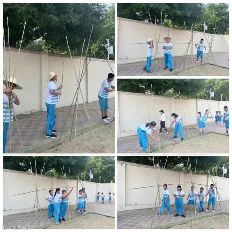 同学们很少接触搭黄瓜架的活动,高年级的同学们利用课余时间自学搭建方法、研究赛事规则,总结搭建技巧,经过反复练习,相互配合,做到了熟能生巧。比赛中,插竹竿、绑竹竿、搭横竿……选手们干劲儿十足,齐心协力,终于搭建好稳固的黄瓜架,收获满满的幸福。