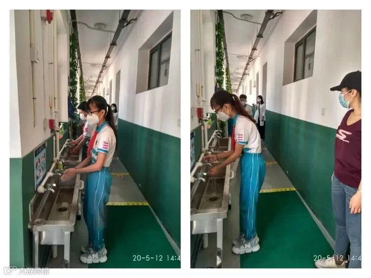 进入教学楼后,学生保持一米距离间隔,有序上楼。进入教室前,学生进行手部消毒,班主任老师对学生进行二次测温并做好记录,体温正常方可进入教室。