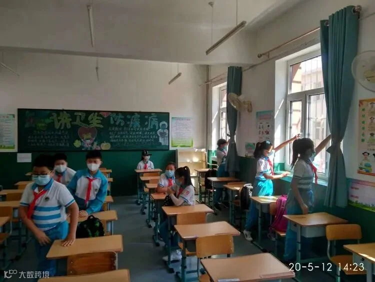 下课后,靠窗就座的同学立即开窗通风。学生有序进行课间活动,避免不必要的流动、交谈,教师监督学生继续佩戴好口罩。