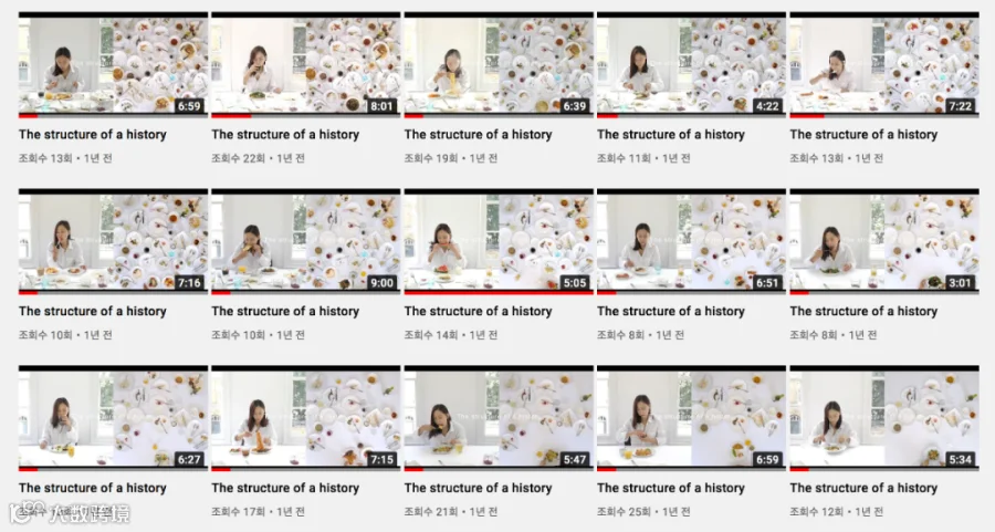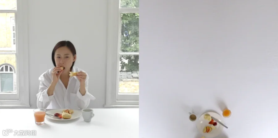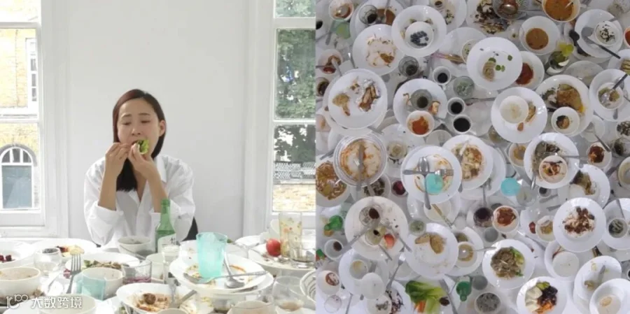 Seulgi Lee Kang 在伦敦对冠状病毒大流行的“长期封锁”期间,她在日常饮食习惯中捕捉到。随着盘子和碗一个接一个地叠在一起,熟悉的食物的碎屑慢慢增长,逐渐填满了她用来饮食它们的白色桌子。这是一部横跨64部影像的记录,这段“历史”的结构不断发展,直到屏幕上充斥着一堆残羹剩饭,一个残存物品的目录。