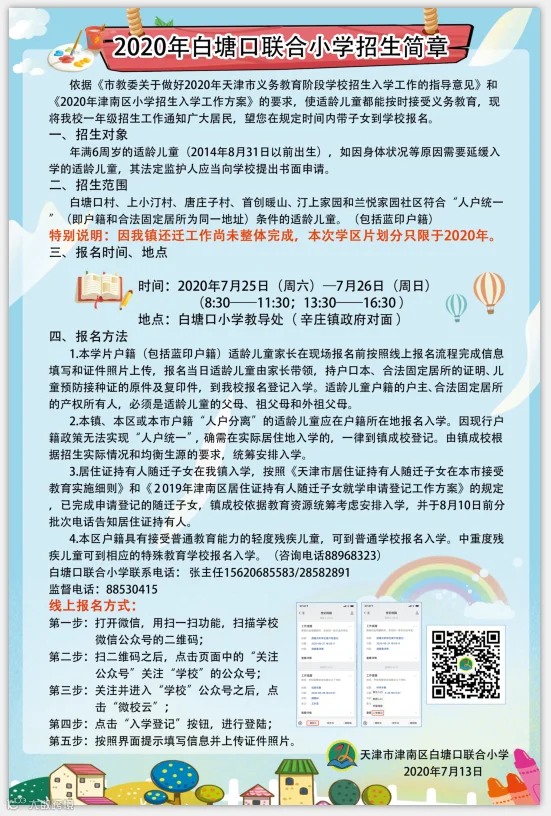 师大二附小办学集团白塘口小学2020年白塘口联合小学招生简章