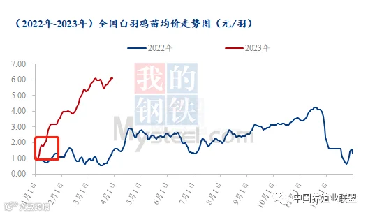 2023年第一季度渐入尾声,从整体趋势来看,白羽鸡苗月均价呈逐月上调趋势,截至2023年3月30日,白羽鸡苗均价4.19元/羽,较2022年第四季度鸡苗均价涨幅高达49.64%;接下来,一起回顾下一季度鸡苗市场,盘点下推动鸡苗价格上行的主要因素,以及对二季度鸡苗市场做下预判