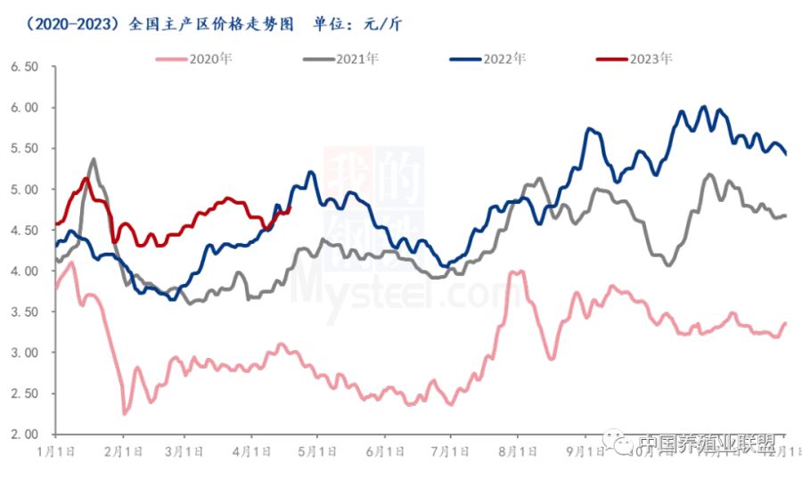 截至4月27日,鸡蛋(4214, 3.00, 0.07%)主产区均价4.60元/斤,部分区域蛋价出现小幅上涨,而此次上涨略显乏力,多数产区表示市场走货减弱明显,而按照往年惯例,假期前夕均会出现小幅回落,2023年是否亦如此表现?