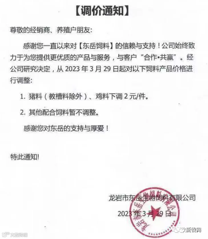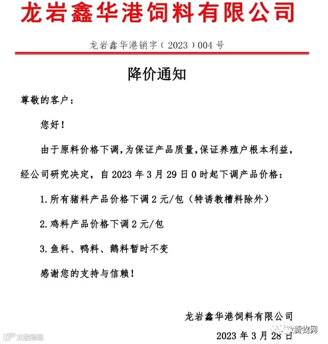 对于饲料公司来说,豆粕现货持续下跌与市场需求不足可能会导致饲料企业竞争加剧,通过降价促销等方式来改善经营状况,提高市场占有率。3月初,海大、通威、粤海、新希望等饲料企业曾发布降价通知,宣布从3月1日起,下调水产饲料价格,幅度为50—125元/吨不等。3月中旬,南昌通威、福建咏蛙、漳州鸿益、广东科绿、广东澄莲等料企相也相继宣布下调产品价格,最高下调300元/吨。