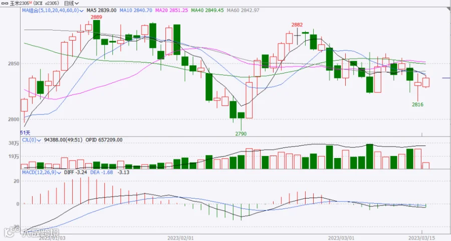 导读:进入2023年以来,近两个半月玉米主力2305合约走势可谓相当纠结,持续围绕2840元/吨上下50点内振荡,