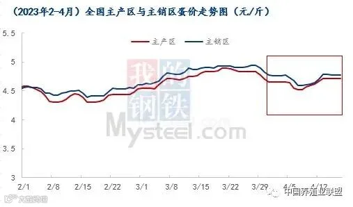 4月鸡蛋市场需求略显清淡,月上旬全国蛋价呈窄幅震荡走势。考虑到本月在产蛋鸡存栏量环比微降,当前生产及流通环节余货均不多,叠加五一假期前经销商将迎来集中备货。在供需双利好的前提下,预计4月下旬蛋价仍存上涨预期。
