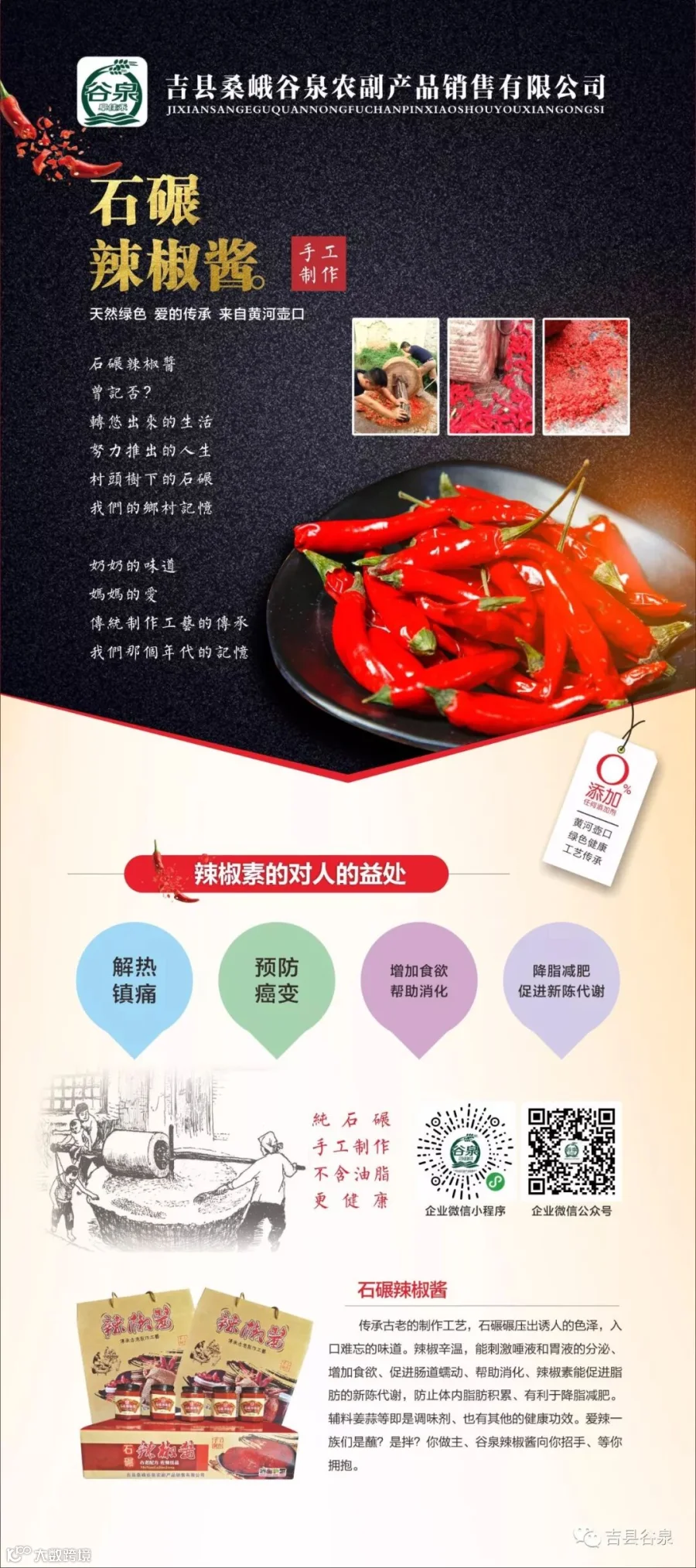 我们石碾辣椒酱,带你顺着石碾逆时针的转动,让你的思绪回到过去,感受记忆里的味道。