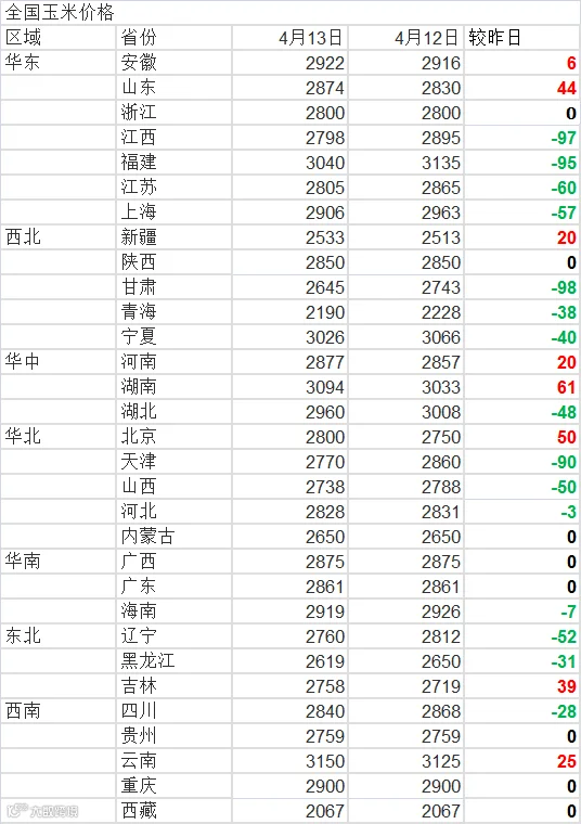 2022年4月13日玉米价格、豆粕价格
