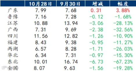 表2 10月国内各区域饲料企业玉米库存天数对比
