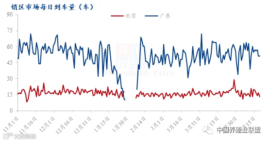 近期国内鸡蛋市场需求延续前期弱势,5月初随着鸡蛋价格走低,食品厂出现抄底备货现象,拉动市场需求小幅提升,但随着备货结束,需求随后减弱。其中销区北京市场需求无明显变化,广东市场因红蛋价格偏高,销区经销商利润缩小,到车量有所减少,走货稍快。