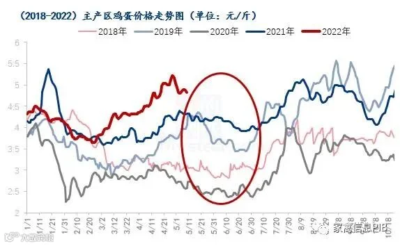 导语:国内鸡蛋市场经过近2个月时间上涨,4月28日起价格迎来连续回调,截至5月10日主产区均价4.77元/斤,较4月28日高价跌0.44元/斤,跌幅8.45%,从往年价格表现来看,梅雨季节的跌势基本也在此阶段显现,那么是今年走势是否也与往年相仿?