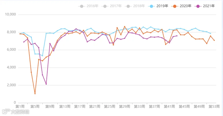 据卓创资讯统计,截至上周末,全国五个代表城市市场总计鸡蛋销量为7595.1吨,环比增幅1.26%,同比降幅8.23%。近一周生产环节天数为1.05天,环比减少26%,流通环节0.88天,环比减少18%。