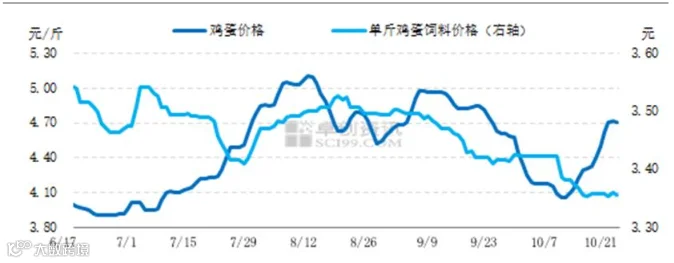 饲料方面,东北地区新粮上市量较少,陈粮价格坚挺,玉米价格小幅上涨;巴西大豆播种继续加速,然市场需求表现不佳,整体呈现观望态度。目前市场缺乏利好支撑,豆粕价格下跌弥补玉米上涨幅度,鸡蛋饲料成本小幅下降。
