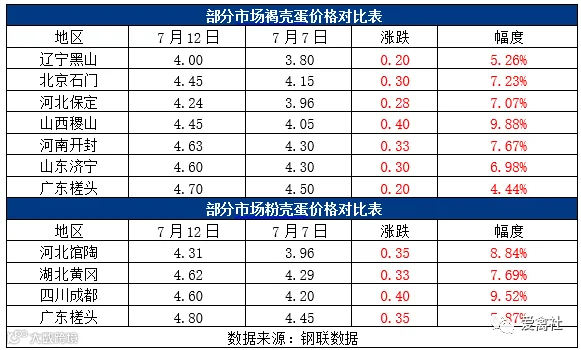7月7日至7月12日,6天时间主产区均价上涨0.32元/斤,涨幅7.64%,那么近期鸡蛋市场迎来连续上涨,具体原因是什么?后市又将如何演绎?