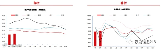 总体来看,目前国内在产蛋鸡存栏较低,供应面压力较小,不过从2021年11月份小鸡苗补栏数据来看,3月份蛋鸡存栏或将逐步增加,未来鸡蛋供应量或将有所增加,由于蛋价回升,当前补栏积极性尚可,产区空栏率有所下降。